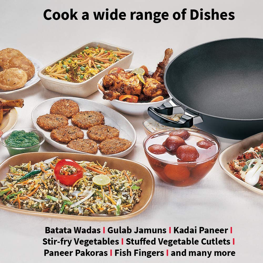 Futura Kadhai (Deep fry pan) Non Induction Round bottom Non stick Black 4.0 L
