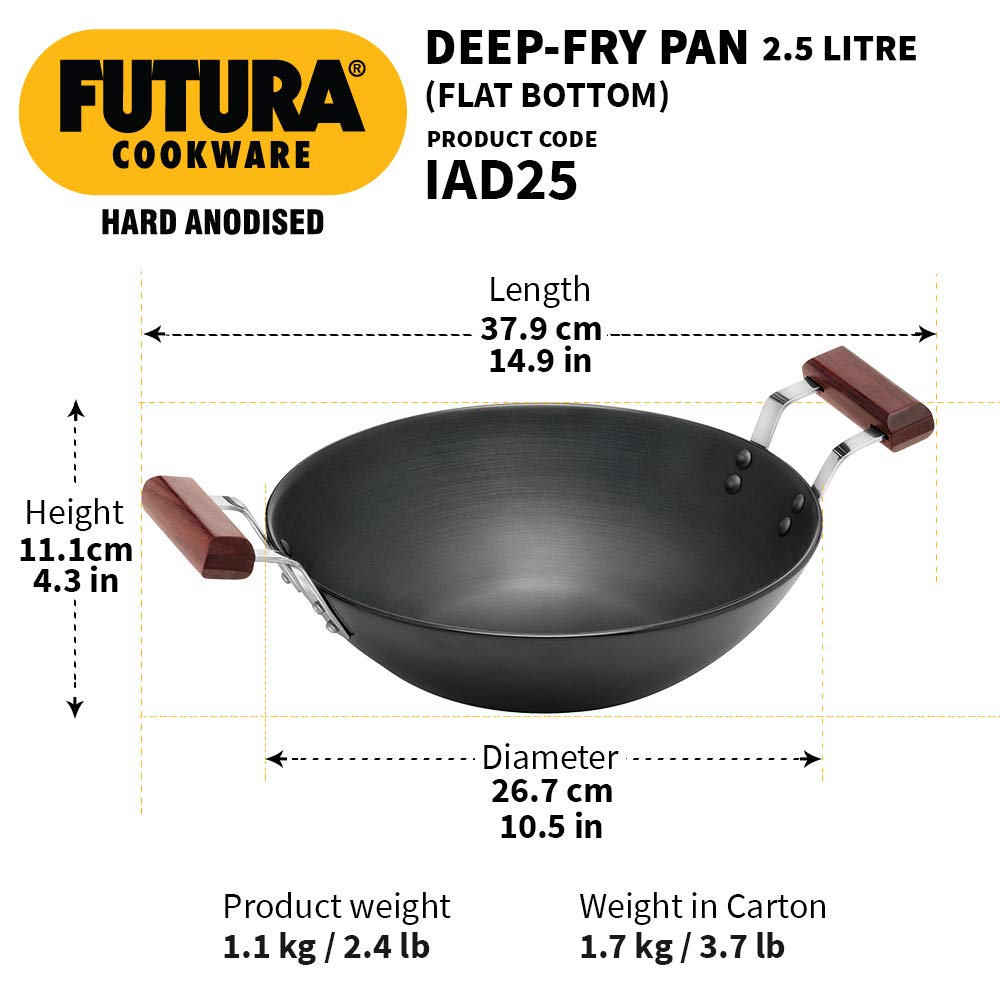 Hard Anodising was first developed by Russian scientists to produce a metal surface tough enough for space travel. The same technology is used by Futura to make Hard Anodised Cookware. The Hard Anodised surface is harder than steel with wonderful properties for cooking.All Futura Hard Anodised Deep-Fry pans come with a elegant, comfortable rosewood handles fixed on sturdy stainless brackets which are permanently riveted to the pan.The Deep-Fry Pan is suitable for domestic gas, induction, radiant electric, ceramic and halogen cooktops.