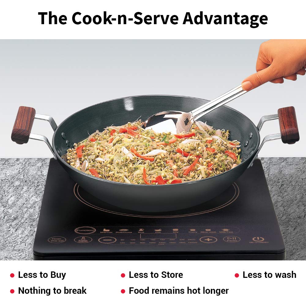 Hard Anodising was first developed by Russian scientists to produce a metal surface tough enough for space travel. The same technology is used by Futura to make Hard Anodised Cookware. The Hard Anodised surface is harder than steel with wonderful properties for cooking.All Futura Hard Anodised Deep-Fry pans come with a elegant, comfortable rosewood handles fixed on sturdy stainless brackets which are permanently riveted to the pan.The Deep-Fry Pan is suitable for domestic gas, induction, radiant electric, ceramic and halogen cooktops.