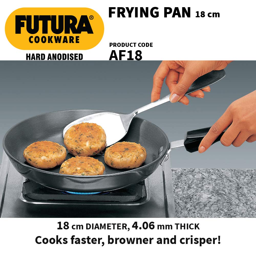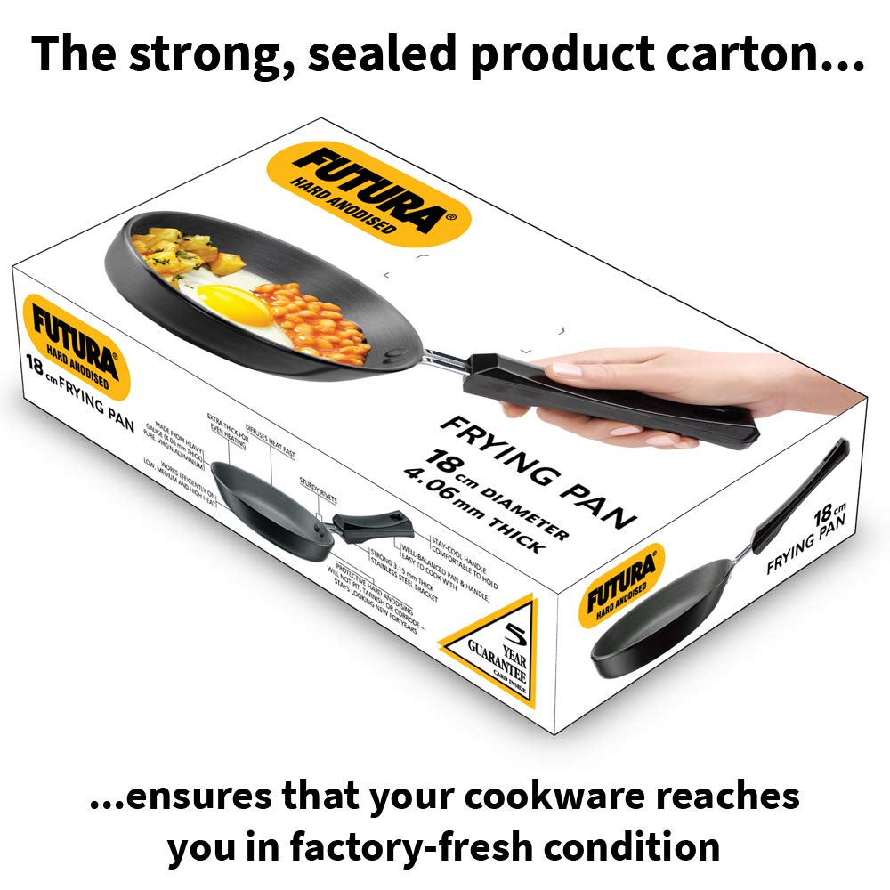 The extra thickness of the Futura Hard Anodised Frying Pans helps you cook without burning with minimal heat control. The instruction manual which comes with each frying pan gives easy tips for use and care as well as tested recipes. The handles, whether plastic are stay-cool and comfortable.The plastic handle is stay-cool and comfortable. Suitable for use on domestic gas, kerosene, electric, ceramic and halogen stoves