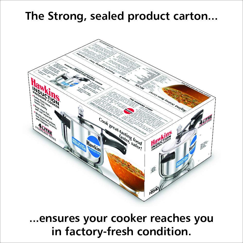 A practical pick for cooking meals for a large crowd, the Hawkins Stainless Steel Induction Bottom Pressure Cooker will help you save time. Built from pure stainless steel, this pressure cooker is durable and touch. Also, made from thick aluminium sandwiched between two sheets of stainless steel, the base ensures even heating for quick cooking.Furthermore, its base does not bulge and remains flat always, which makes it easy to place on a flat surface or a stovetop.