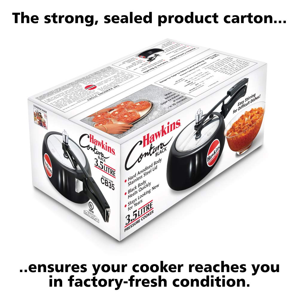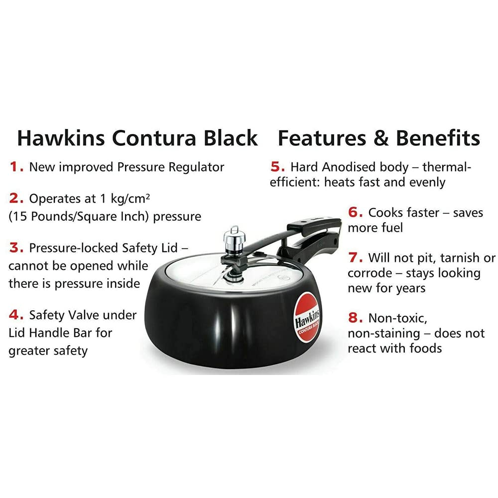 You can prepare your favourite meals in a jiffy with the efficient Hawkins Contura Aluminium Pressure Cooker. It is designed with rounded sides that make stirring, removing, and viewing your food convenient. Built with an inside-fitting lid, this pressure cooker keeps the pressure locked for safety and efficiency while cooking. Moreover, a safety valve is situated below the lid's handlebar, which deflects the steam in a downward direction to prevent burns.