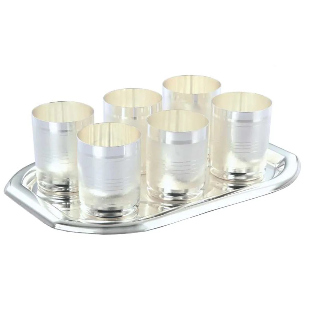 Designer silver plated King Tray 6 Amrapali Glass Set
