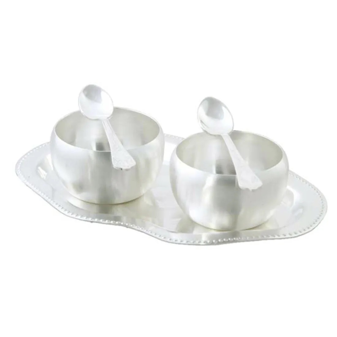 Designer silver plated German Tray Deep Eye Bowl Mini Spoon Set