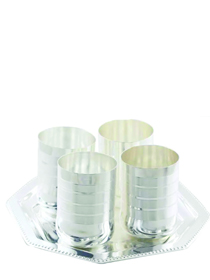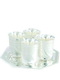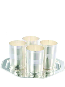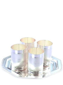 Designer silver plated Octagon Tray 4 Ditto Glass Set