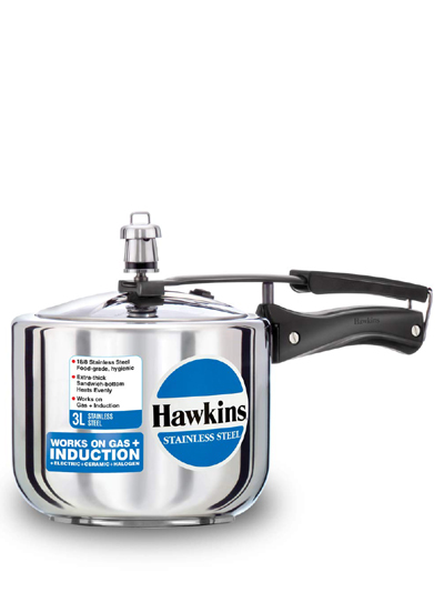 Hawkins Stainless Steel Pressure Cooker Gas + Induction Stainless Steel Silver 3L Tall