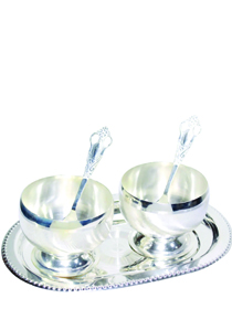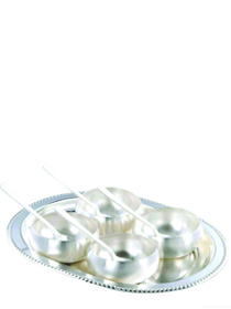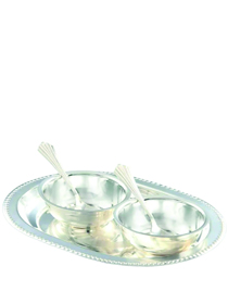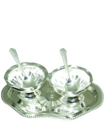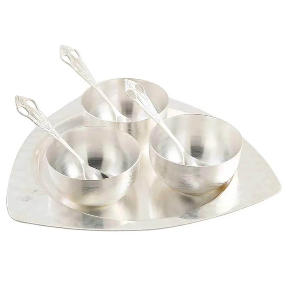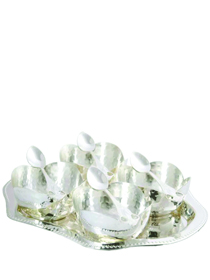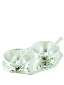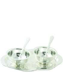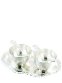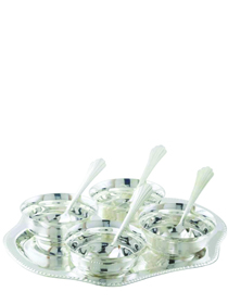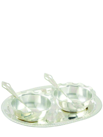 Designer silver plated German Tray Deep Eye Bowl Mini Spoon Set