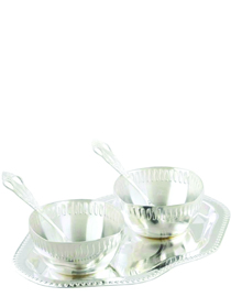 Designer silver plated German Tray 2 Bowl Coffee 2 Spoon Set