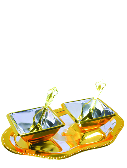 Desiner Gold Silver Plated New Capsule Tray(M) 2 Fanta Bowl and 2 Spoon Set