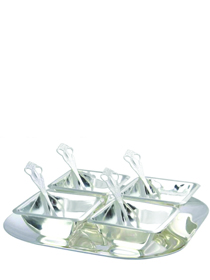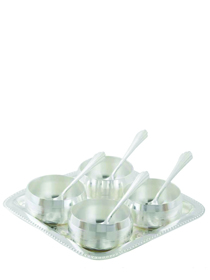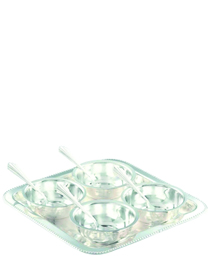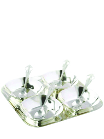 Designer Silver Plated Lazer Tray 4 Square Deep Bowl Fantastic 4 Spoon Set