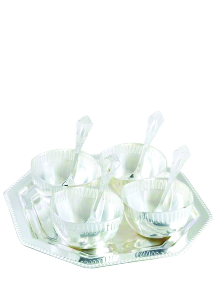 Designer Silver Plated Octagon Tray 4 Octagon Bowl 4 Fantastic Spoon Set