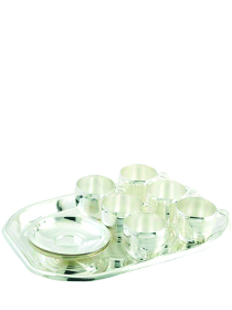 Designer silver plated King Tray 6 Amrapali Glass Set