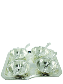 Designer Silver Plated German Tray 4 Pari Bowl Tea 4 Spoon Set