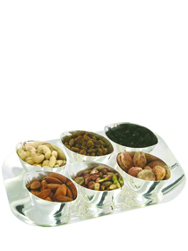 Designer silver plated Salad Tray 6 Disco Glass Set