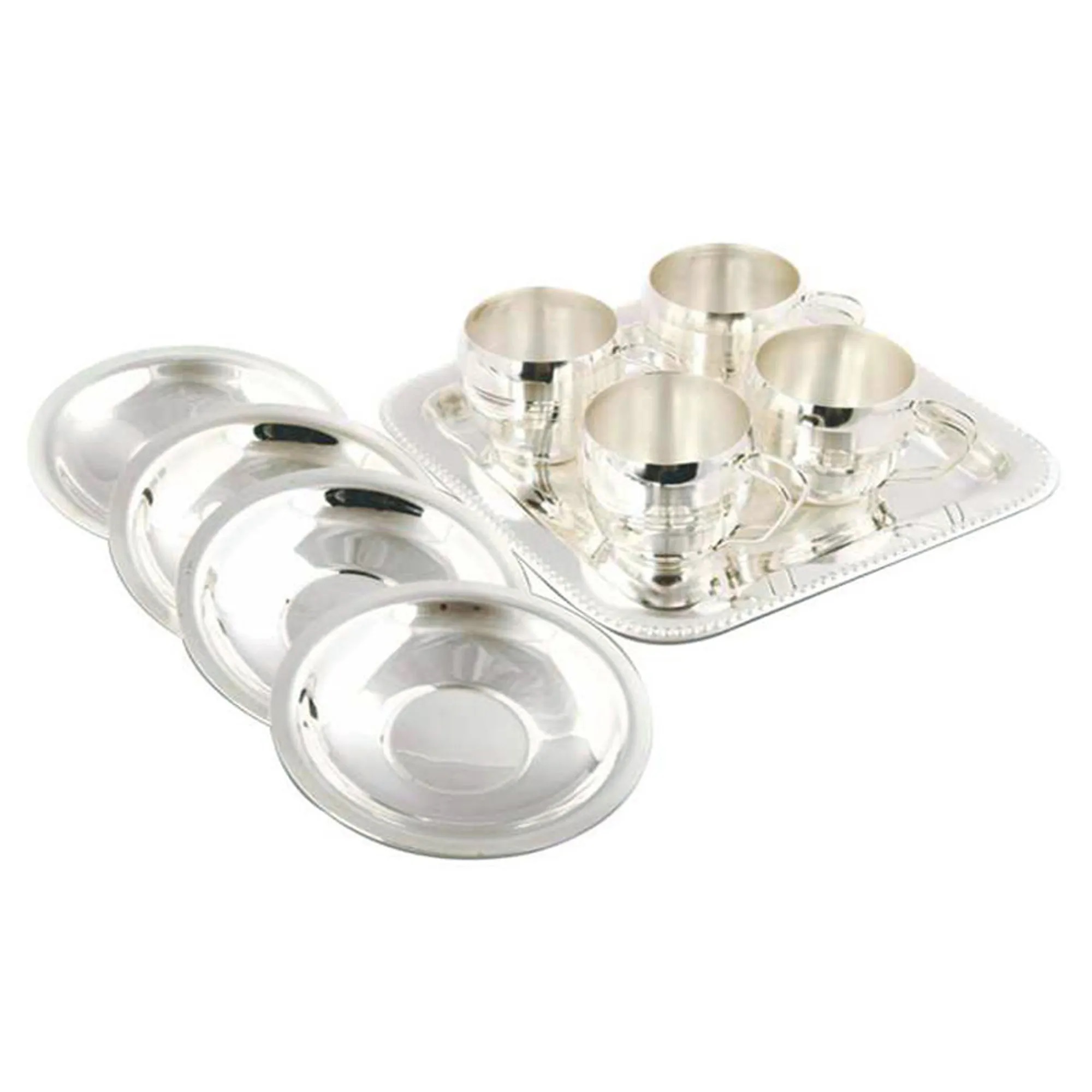 Designer Silver Plated German Tray 4 Pari Bowl Tea 4 Spoon Set