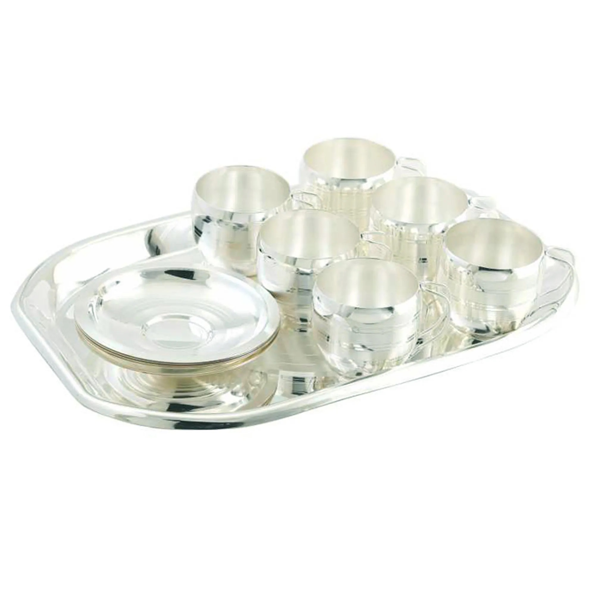 Pure Silver Plated Cup Saucer Set Material: Metal (silver Plated) MADE IN INDIA. Attractive Packing Box To Gift your loved ones and Perfect addition to your home decor.TRAY 31.5 X 22.5 CM / CUP 7 X 6 CM / SAUCER 13 X 2 CM, Weight 1310 gm