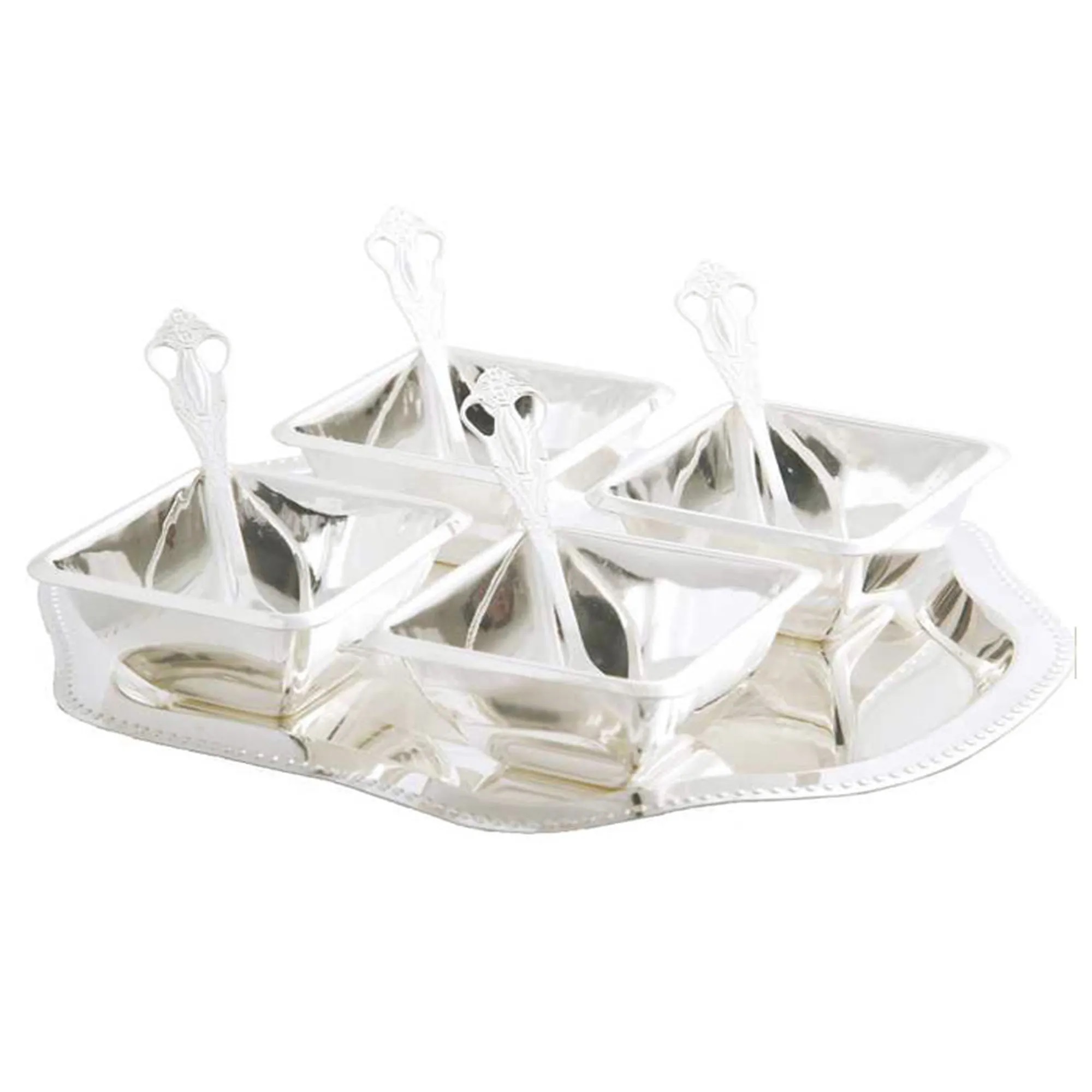 Pure Silver Plated Deep Bowl Set Material: Stainless Steel (Silver Plated) MADE IN INDIA. Attractive Packing Box To Gift your loved ones and Perfect addition to your home decor.Product Dimention: TRAY 25.5 X 20 CM / BOWL 8 X 4 CM Product Weight: 765 gm