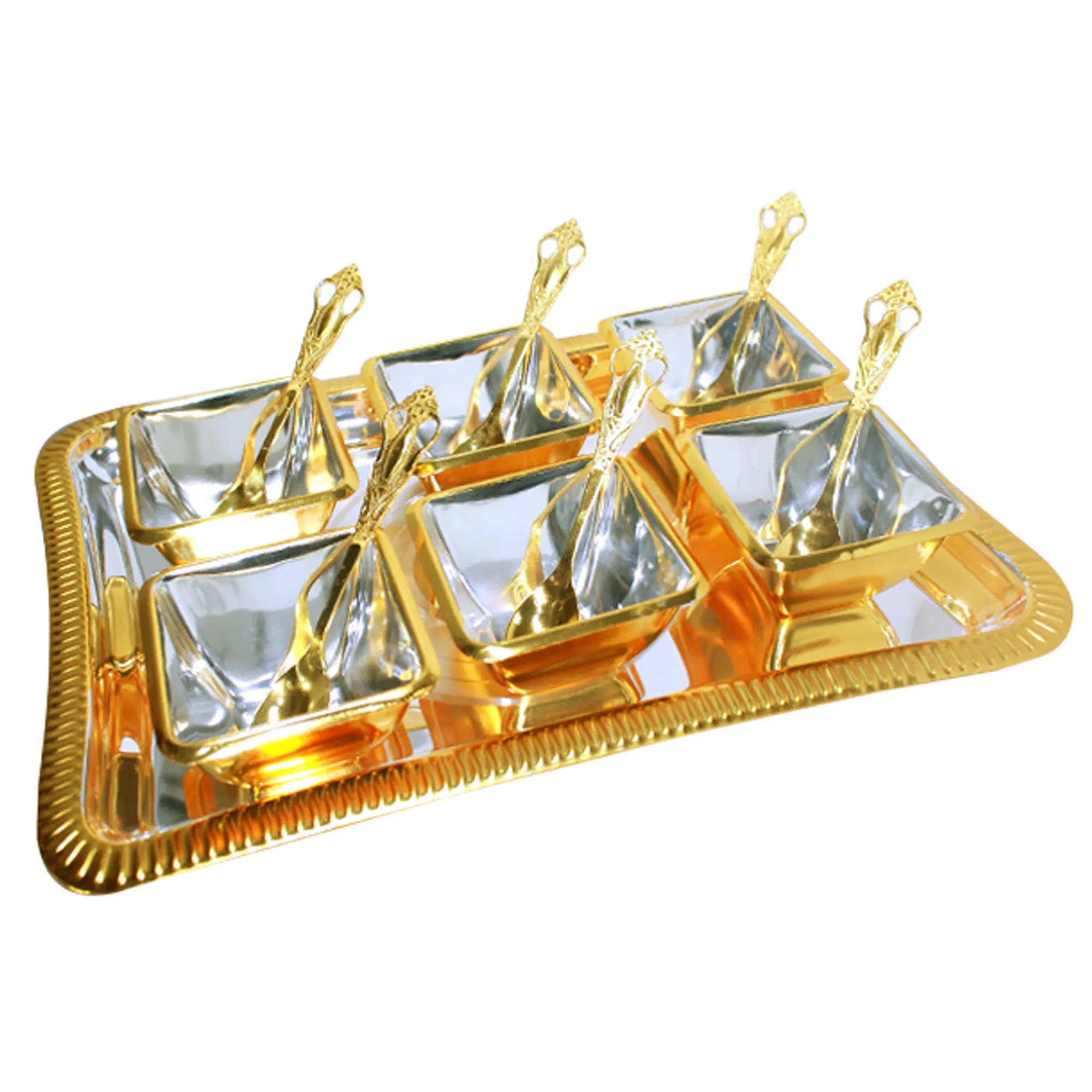 Desiner Gold Silver Plated Disco Tray 6 Pari Bowl 6 Spoon Set