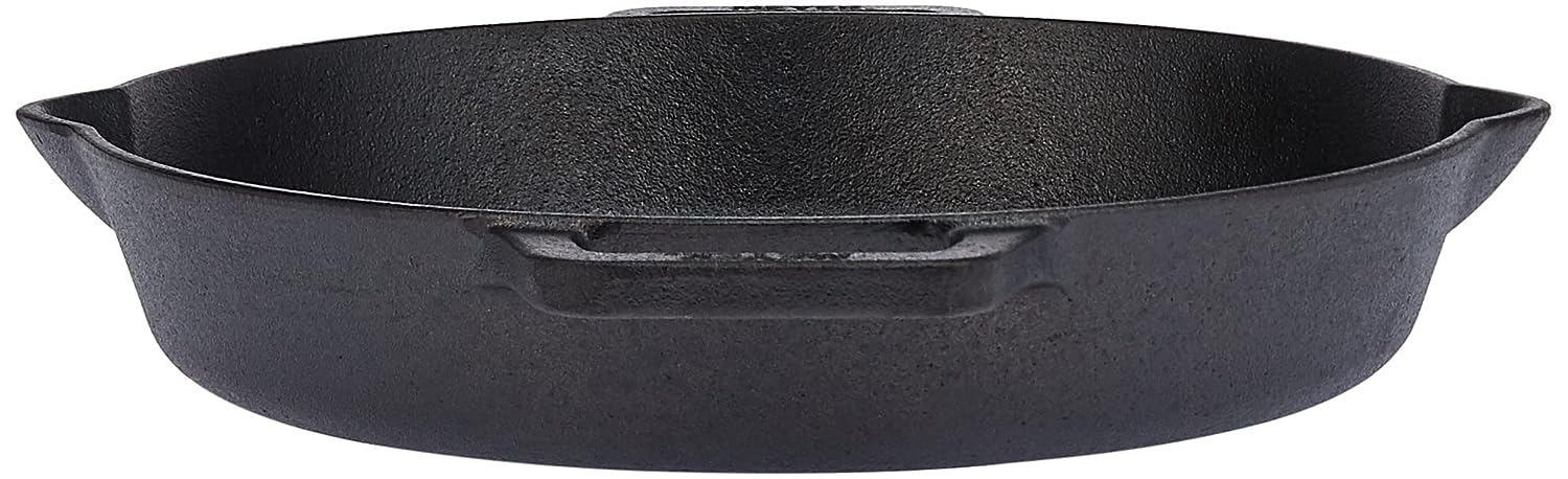 Hassle free LIFETIME WARRANTY on the performance of the skillet and any manufacturing defect.,Totally Toxin-free - No ENAMEL, No CHEMICAL coating on inner or outer surface. Pre-seasoned with 100% Vegetable Oil. Regular seasoning creates a chemical free natural non-stick surface for low oil cooking,Uni-body - one-piece design with easy pouring lips. Free of any screws or weld joints. Suitable for all cooktops including Induction. Comes with two canvas grips (for each side handle) for easy handling