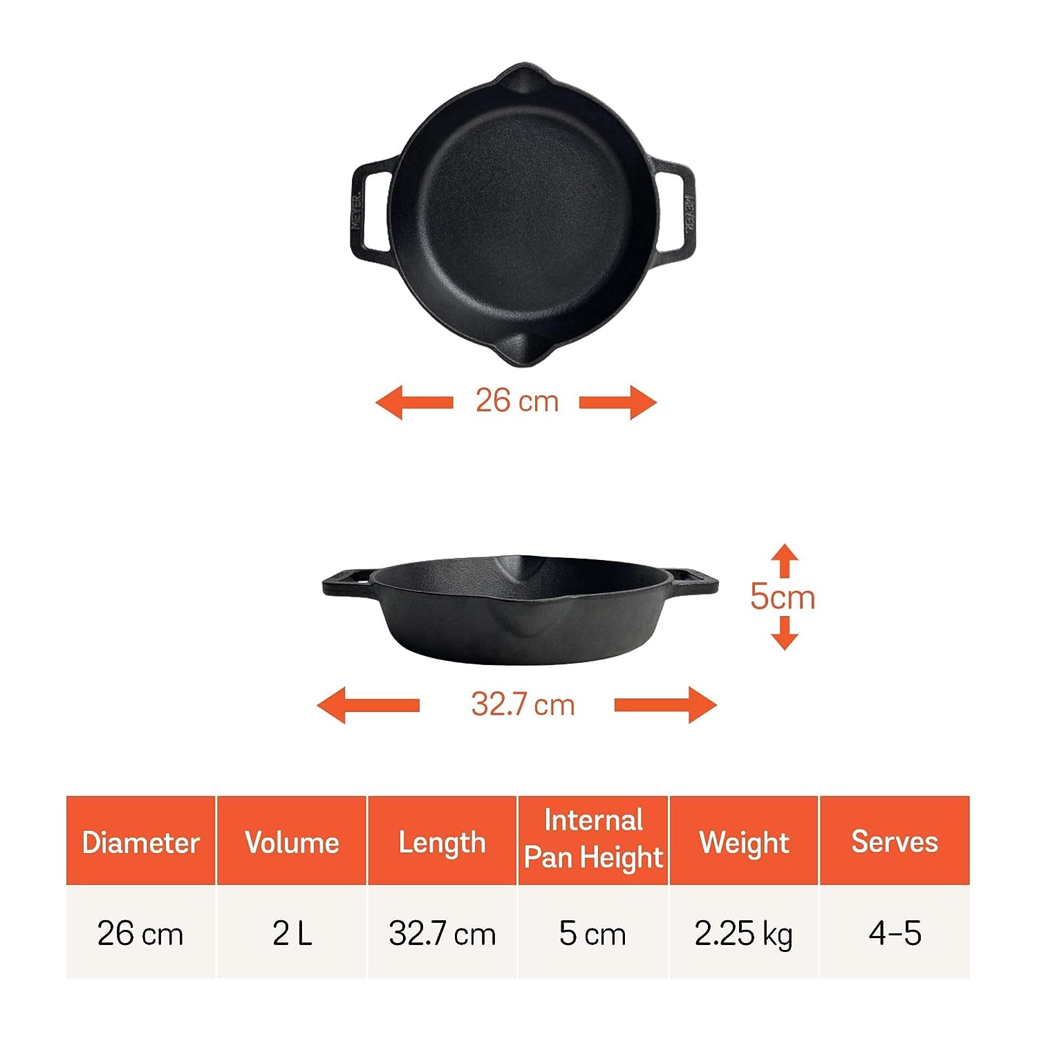 Meyer Pre-Seasoned Cast Iron Skillet WithTwo Side Handles 26cm