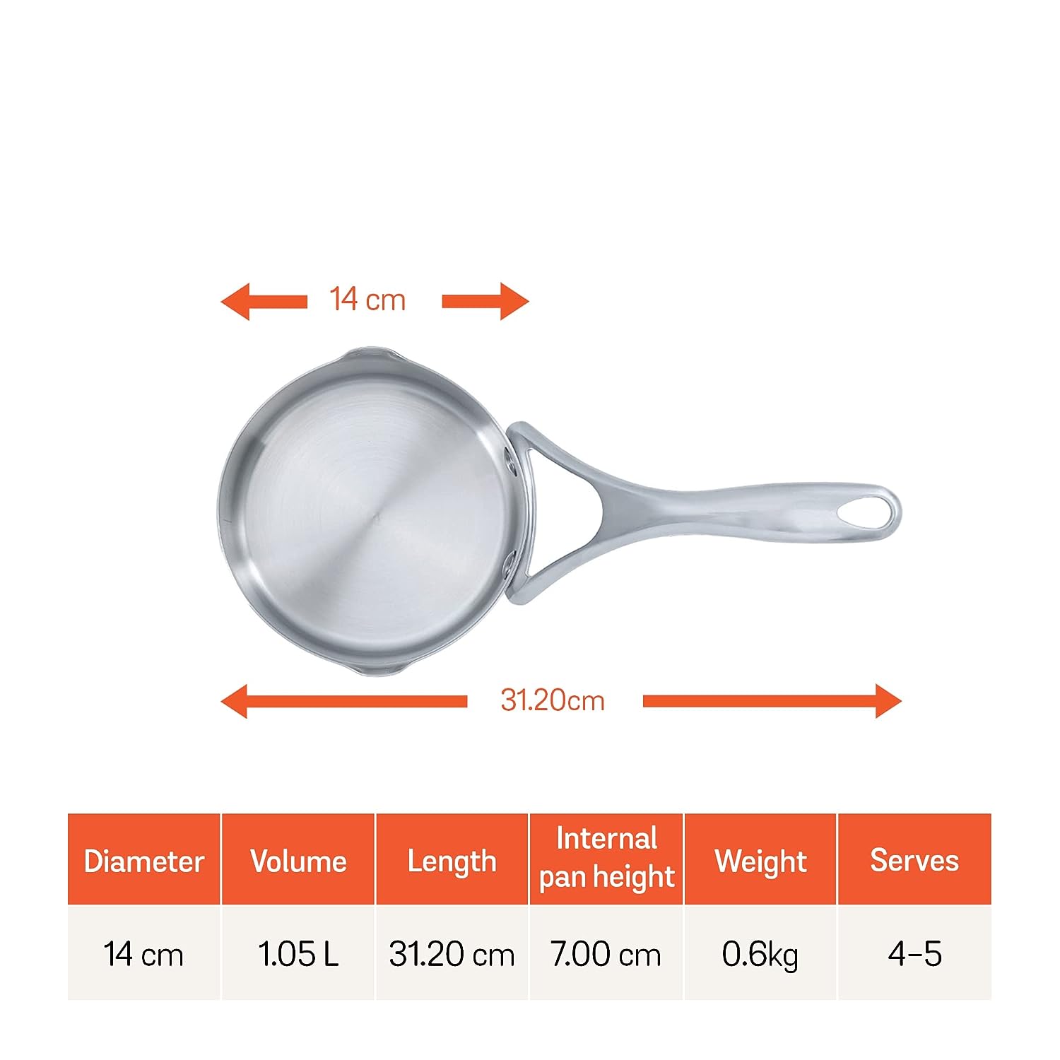 The milkpan is made of nickel free stainless steel and has a capacity of 1 Litre. Superior pitting resistance compared to ordinary stainless steel.,No hot spots: Cooks evenly as the thick Aluminium core distributes heat uniformly,Superior pitting resistance compared to ordinary stainless-steel. Riveted ‘stay cool’ handle with comfortable silicone grip.,Aesthetically pleasing: Mirror Polished finish outside & Emery finish inside. 10-year Warranty: Free from material & workmanship defects under the normal household usage,Compatible with all cooktops, including induction. Metal utensil safe; Oven and Dishwasher safe.