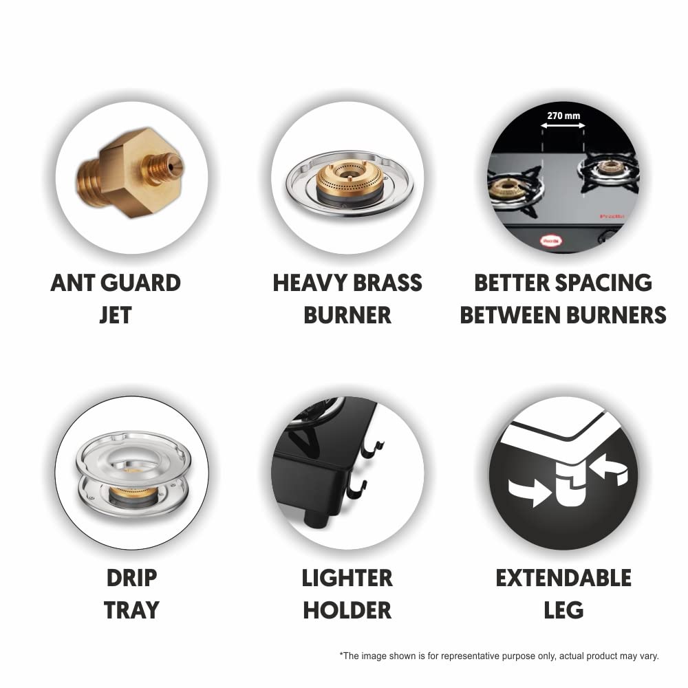 Heavy Duty Brass Burner: improved durability, faster cooking and consistent efficiency for years. Tripad Mixing chamber : Supports optimum mixture of air & gas ...