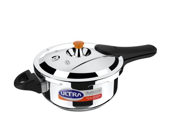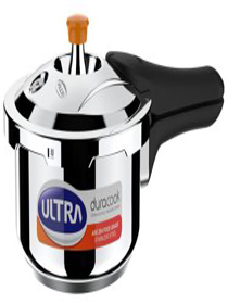 The 5.5 L Ultra duracook pressure cooker is made of AISI 304 food grade stainless steel and hence ensures rust free healthy food. The high-impact bonded 3 layer composite base enables even distribution of heat through the bottom and aids uniform cooking without any burning or charring. The cooking time is also much less than in other regular cookers. The heat-resistant & heavy solid bakelite handles with twin screws ensures that handles do not become loose. Healthy and fast cooking, durability are good reasons to upgrade to an Ultra duracook stainless steel pressure cooker.