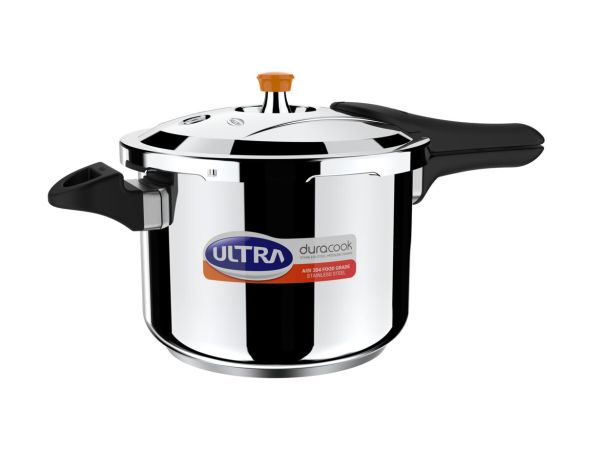 The 6.5L Ultra duracook pressure cooker is made of AISI 304 food grade stainless steel and hence ensures rust free healthy food. The high-impact bonded 3 layer composite base enables even distribution of heat through the bottom and aids uniform cooking without any burning or charring. The cooking time is also much less than in other regular cookers. The heat-resistant & heavy solid bakelite handles with twin screws ensures that handles do not become loose. Healthy and fast cooking, durability are good reasons to upgrade to an Ultra duracook stainless steel pressure cooker.